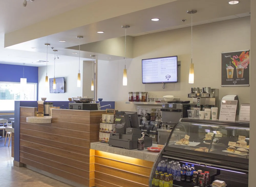 Sip offers various Starbucks’ signature beverages from espresso drinks  and tea to pastries and grab-and-go items, including sandwiches, parfaits and canned drinks. Sip is located on the first floor.